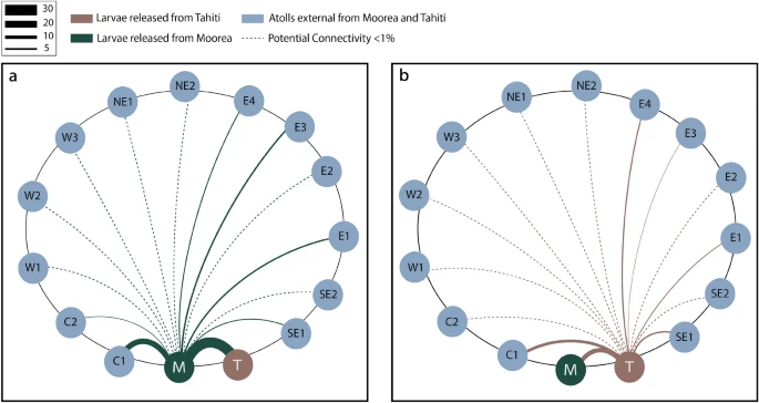 Lama, S.J., Lopera, L. & Bracco, A. The role of mesoscale-driven connectivity patterns in coral recovery around Moorea and Tahiti, French Polynesia. Sci Rep 14, 22349 (2024). https://doi.org/10.1038/s41598-024-73185-2↩︎