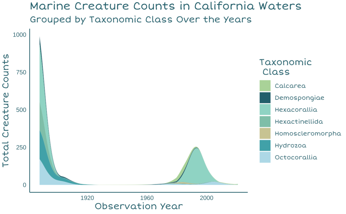 The R code used to create these visuals can be found at the bottom of this post, in case you would like to run it for yourself! Or if you’d like, you can use this link to access the GitHub repository for this project: California Deep Sea Coral Notebook Repository